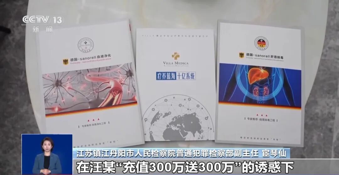 江苏镇江丹阳市人民检察院普通犯罪检察部主任 魏巍:这些假专家利用虚假的体检报告,在一对一解读时精准“下危机”,夸大客户健康问题。全程陪伴客户的代理商,也会适时劝解,灌输“与其将来花钱治重病,不如现在花钱保养”的观念。这一切的最终目的,是推销那些价格高得离谱的“疗养项目”。