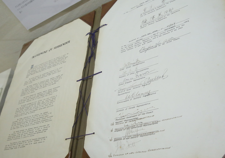 这是2015年9月1日在日本东京外务省外交史料馆内拍摄的日本二战无条件投降书原件。新华社记者 刘天 摄