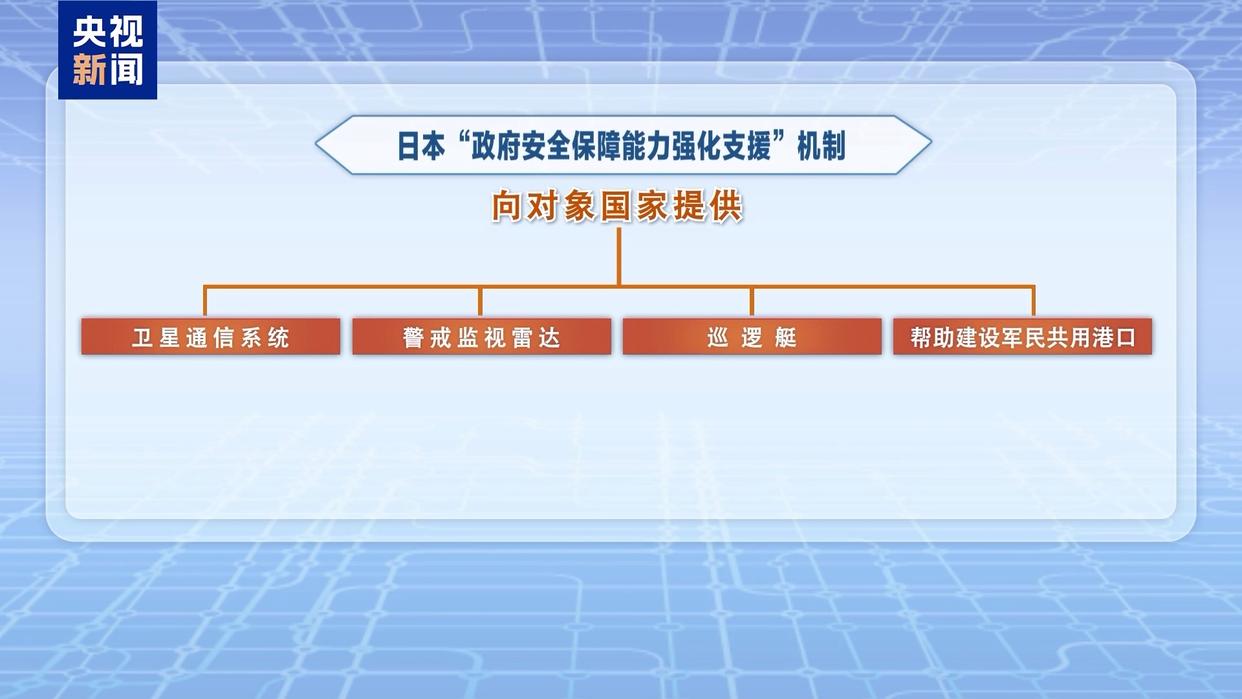 2023年4月,日本设立“政府安全保障能力强化支援”机制,以发展中国家为所谓支援对象,提供卫星通信系统、警戒监视雷达、巡逻艇以及帮助建设军民共用港口等,“以稳定对日本至关重要的海上交通要道”。