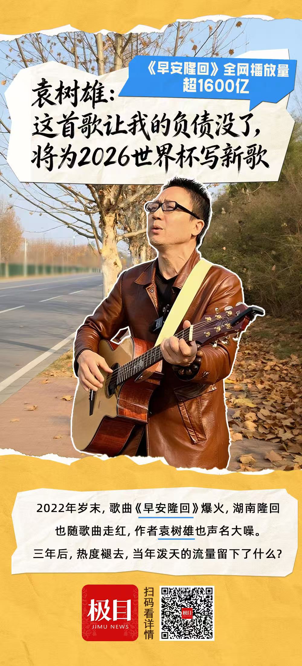 “我就是一个打赤脚的,我曾经来过,我曾经辉煌过,大火到平淡,掉下来很正常。任何东西都不可能永远保鲜,何况我认为还没掉下来。前几天刚去了湘超,后来参加了全省优秀群众文艺作品展演,接下来还有走进校园的公益演唱会,我们演出不断。”袁树雄点亮手机向记者展示,在2025年9月的第一周,《早安隆回》在抖音平台上仍有1.7亿的播放量,他感到满意。