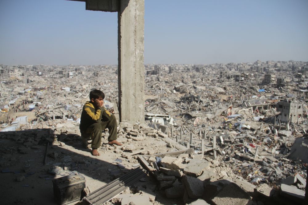 1月29日,在加沙地带杰巴利耶难民营,一名巴勒斯坦少年望向废墟。新华社发(阿卜杜勒拉赫曼·萨拉马 摄)