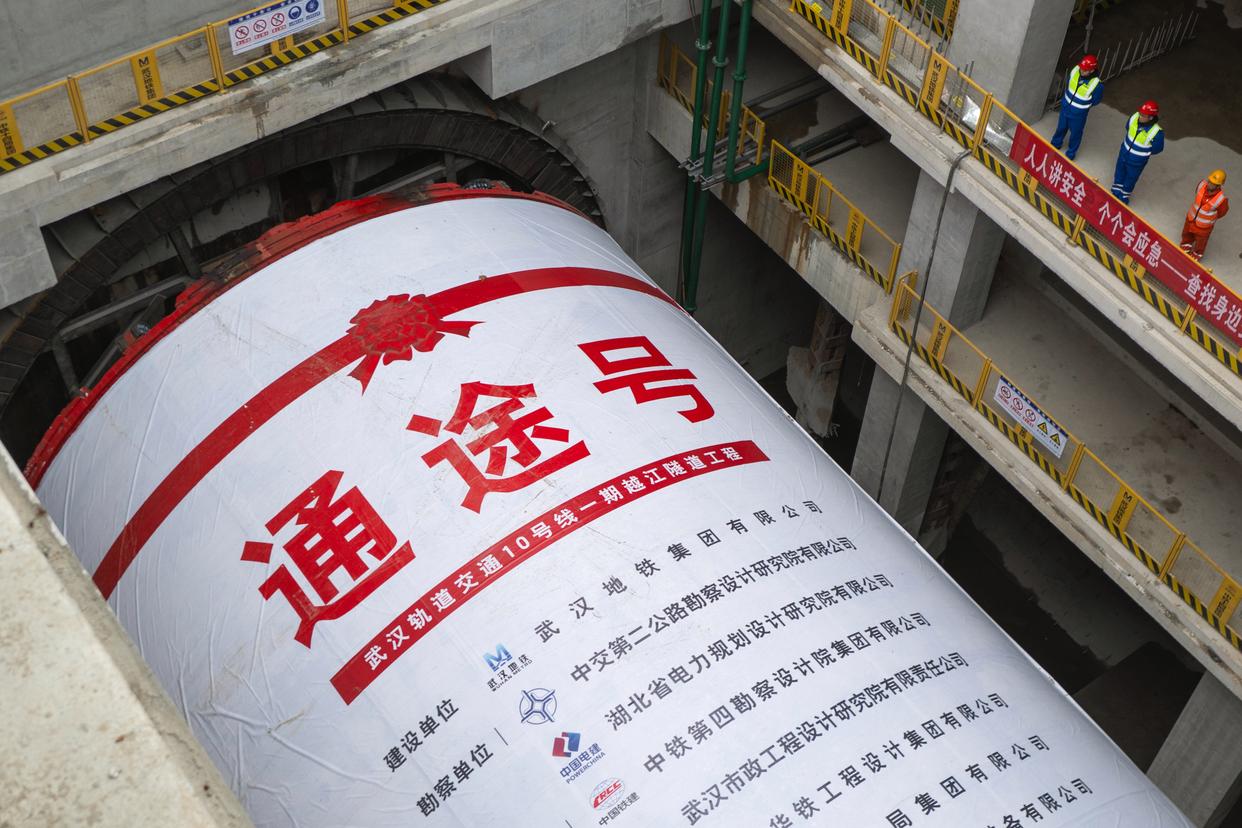 2026年1月1日拍摄的武汉地铁10号线一期工程穿江隧道盾构始发现场。新华社记者 肖艺九 摄