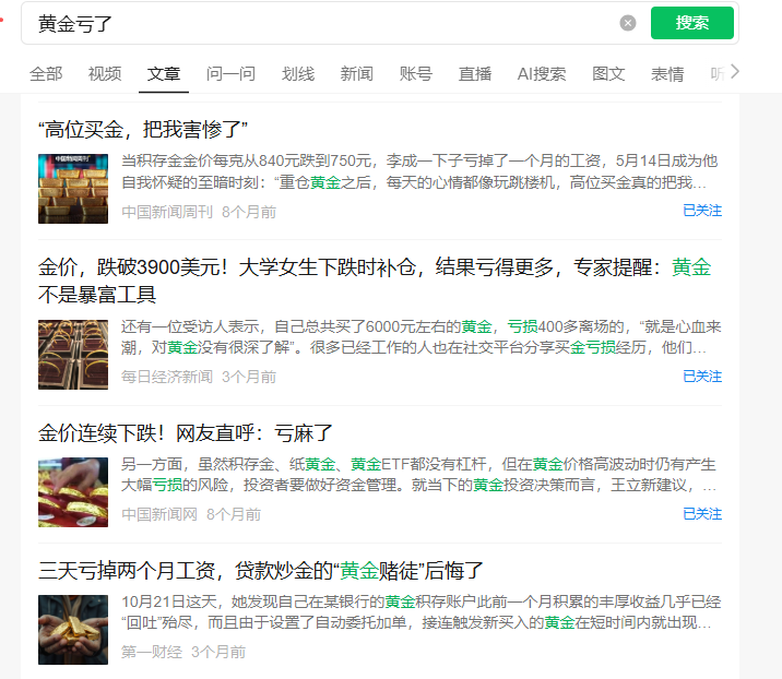 社交媒体上,黄金理财的帖子满天飞。在某社交媒体平台搜“买黄金投资”,跳出来1600多万篇笔记。