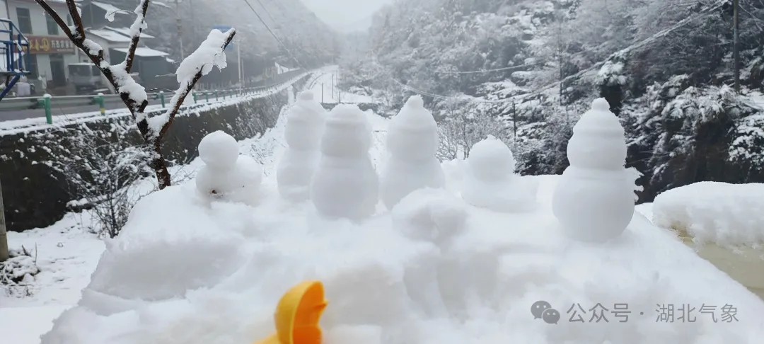 元旦假期期间湖北武汉、宜昌、襄阳、十堰等地下雪了雪花为山川披上银装白雪皑皑仪式感拉满不少游客组团来打卡