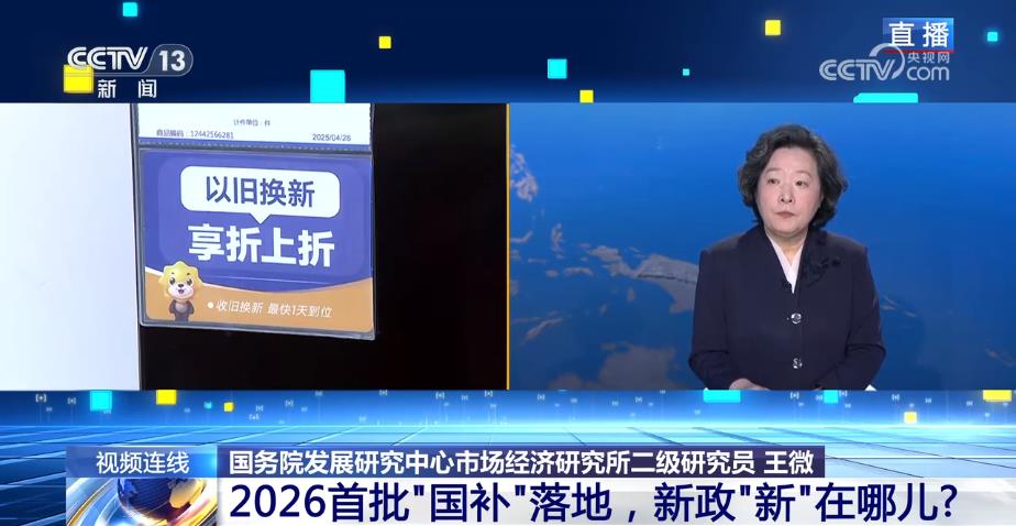 国务院发展研究中心市场经济研究所二级研究员王微:2026年的“国补”政策,在补贴的导向上更加强调覆盖人群更广、产品带动能力更强。有利于绿色低碳、智能数字这样的一些消费品的推广。同时,能够让更多的老百姓和重点产品的“得补率”得以提高。