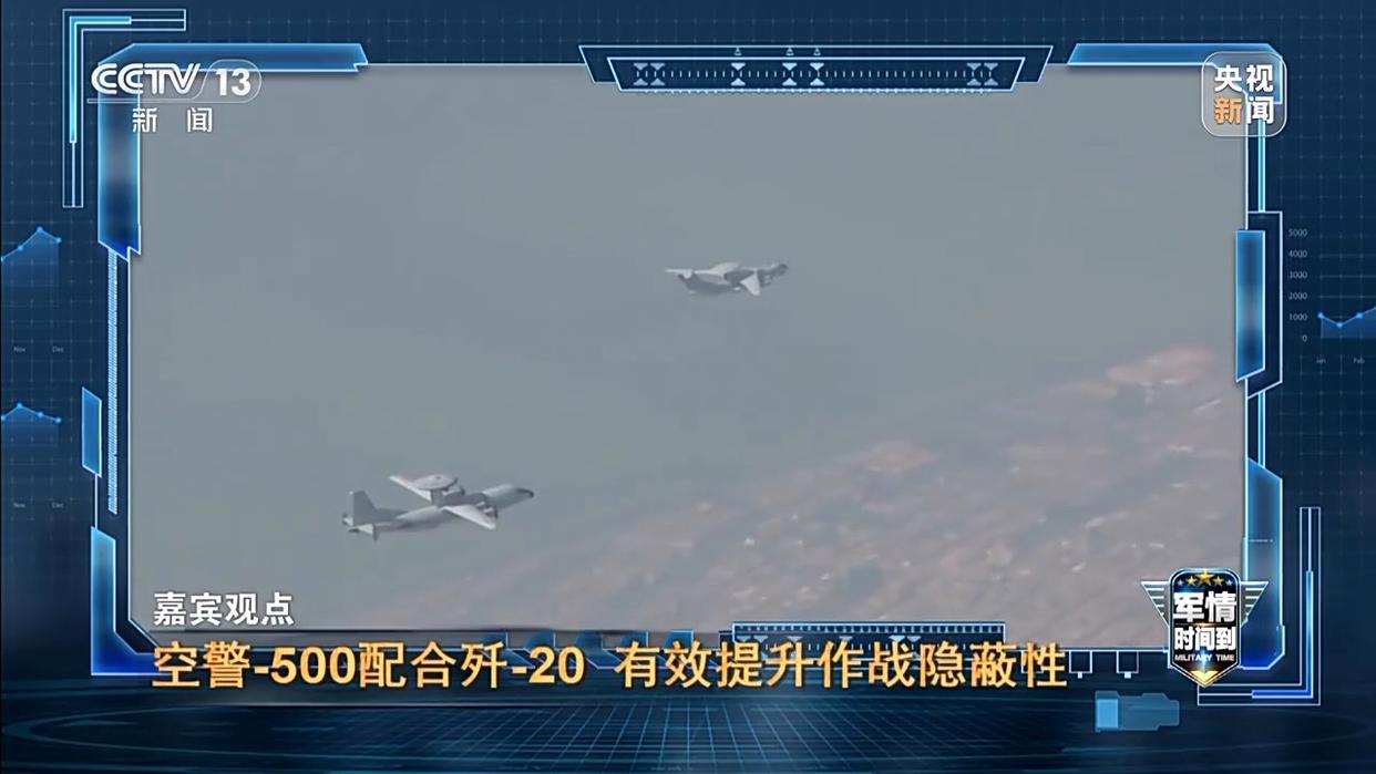 主持人:我们再来说说歼-20的另外一个小伙伴空警-500。在人民空军开放活动上,我们也看到有空警-500加上歼-20的编队飞行,这是首次公开亮相。这对黄金搭档是怎么来进行配合出击的?