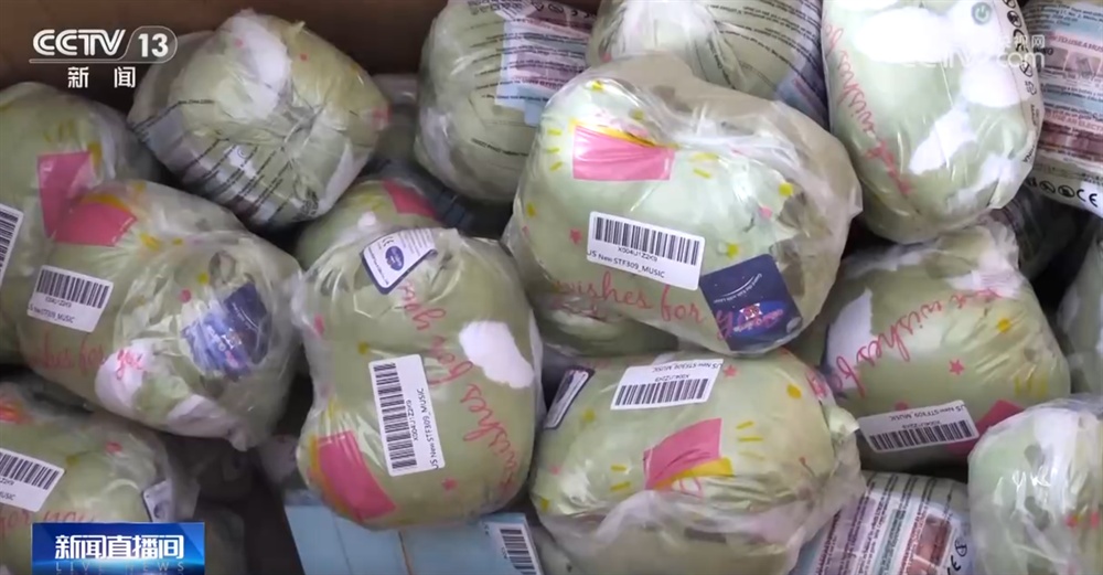 忙碌的不仅是生产车间,在发货区,毛绒玩具的打包工作也在紧锣密鼓地进行。企业负责人告诉记者,今年春节前的订单量同比增长超过200%,呈现出爆发式增长态势。