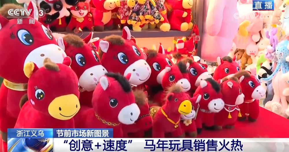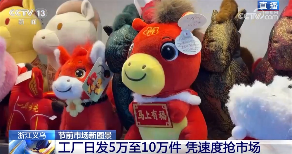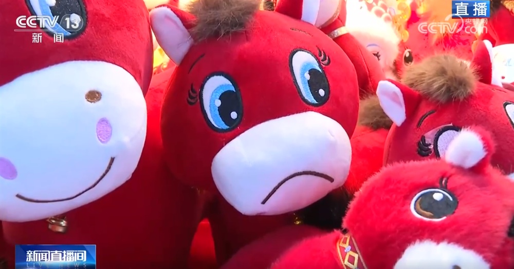 江苏扬州某毛绒玩具企业负责人 唐丽丽:我们也发现马年的产品跟往年比起来真的更热销一点。比如我们最近在做线上直播,前两天刚播了一场,订单直接“爆”了。像这个经典款“飞马”一场直播能出几千单,所以仓库一直忙着打包马年产品。