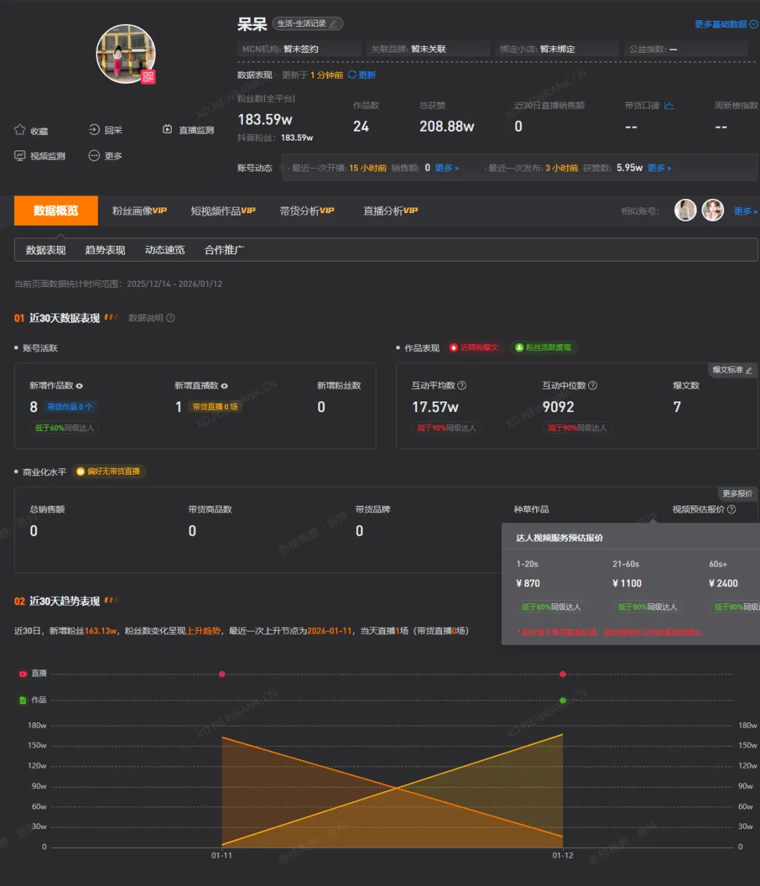 商业化水平显示,呆呆1—20s视频广告报价为870元,21—60s视频广告报价为1100元,60s以上视频广告报价为2400元。企查查显示,“呆呆”商标已被多方申请注册,国际分类涉及设计研究、科学仪器、日化用品等。