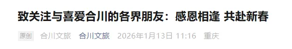 1月13日中午,重庆市合川区文化和旅游发展委员会公众号“合川文旅”最新发文《感恩相逢 共赴新春》: