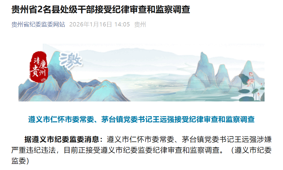 1月16日,据贵州省纪委监委网站: