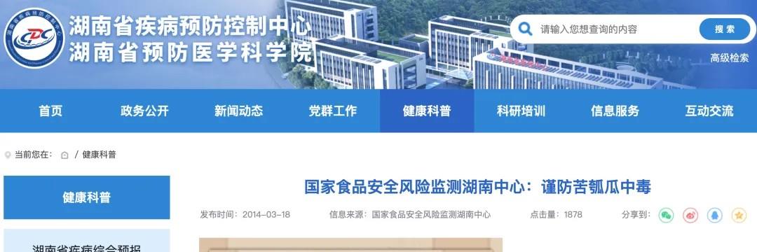 但是这些本身不苦的葫芦科瓜类(瓠瓜、丝瓜、西葫芦、黄瓜等)变苦,是因为产生了苦味的葫芦素。葫芦素是一种热稳定性较强的毒素,即使高温烹饪也难以分解,这种毒素会攻击神经系统,让人头晕、呕吐、腹痛,甚至器官衰竭。湖南等多个省市的疾控中心,均在各家的官方网站上提醒民众,要注意苦味瓜导致中毒。