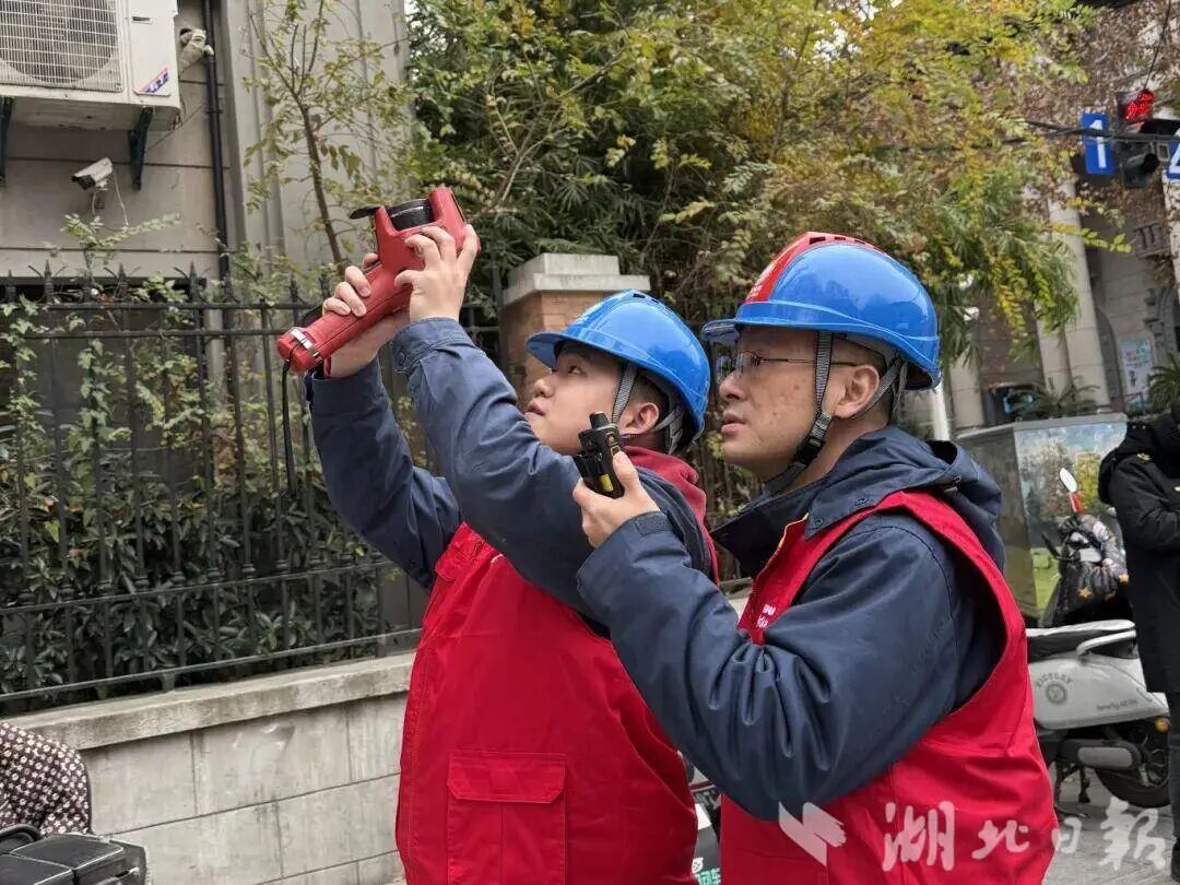国网武汉供电公司江岸供电中心运维人员重点对辖区内易覆冰线路、设备、配电台区等关键部位进行排查,利用红外测温仪检测设备温度及时清理树障。同时,供电服务站下沉社区,向居民宣传雪天安全用电常识,为降雪期间电网安全稳定运行,居民可靠用电筑牢防线。