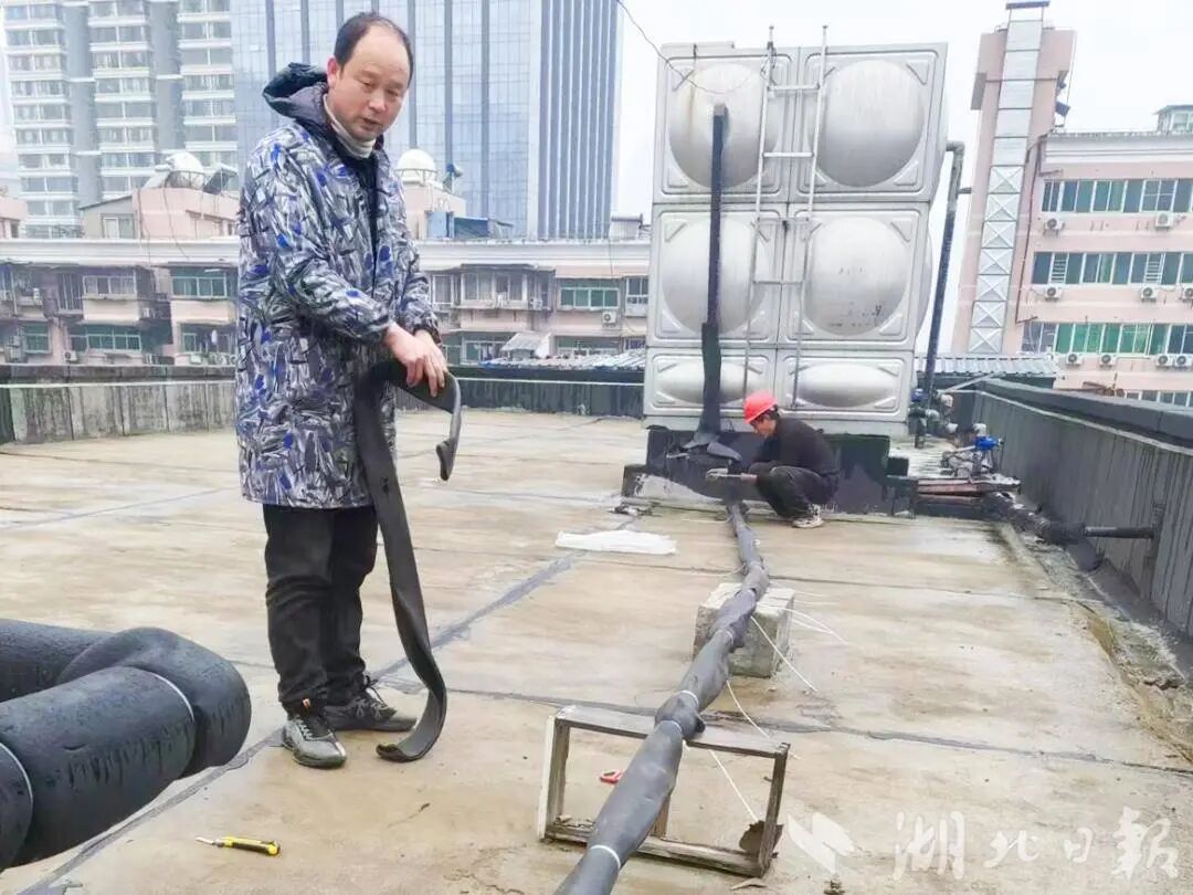 水务局对老旧小区管道、水表等区域排查中,及时更换破损、老化保温材料,对江岸辖区内小区立管、水表等关键供水设施进行检查及保温处理。截至1月19日,已完成立管包扎8000余米,加装水表保温套7000余只。同时,60余人融雪防冻应急队伍及应急车辆、设备全部到位。