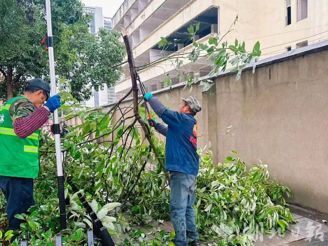 园林局清理城市主干道、公园广场等重点区域枯枝断枝,排查公园、游园照明、监控、防护栏设施,加密重点区域巡查频次,配备车辆52台、油锯、铁锹等工具百余件及足量融雪剂、草垫,全力保障园林绿化安全和市民出行安全。
