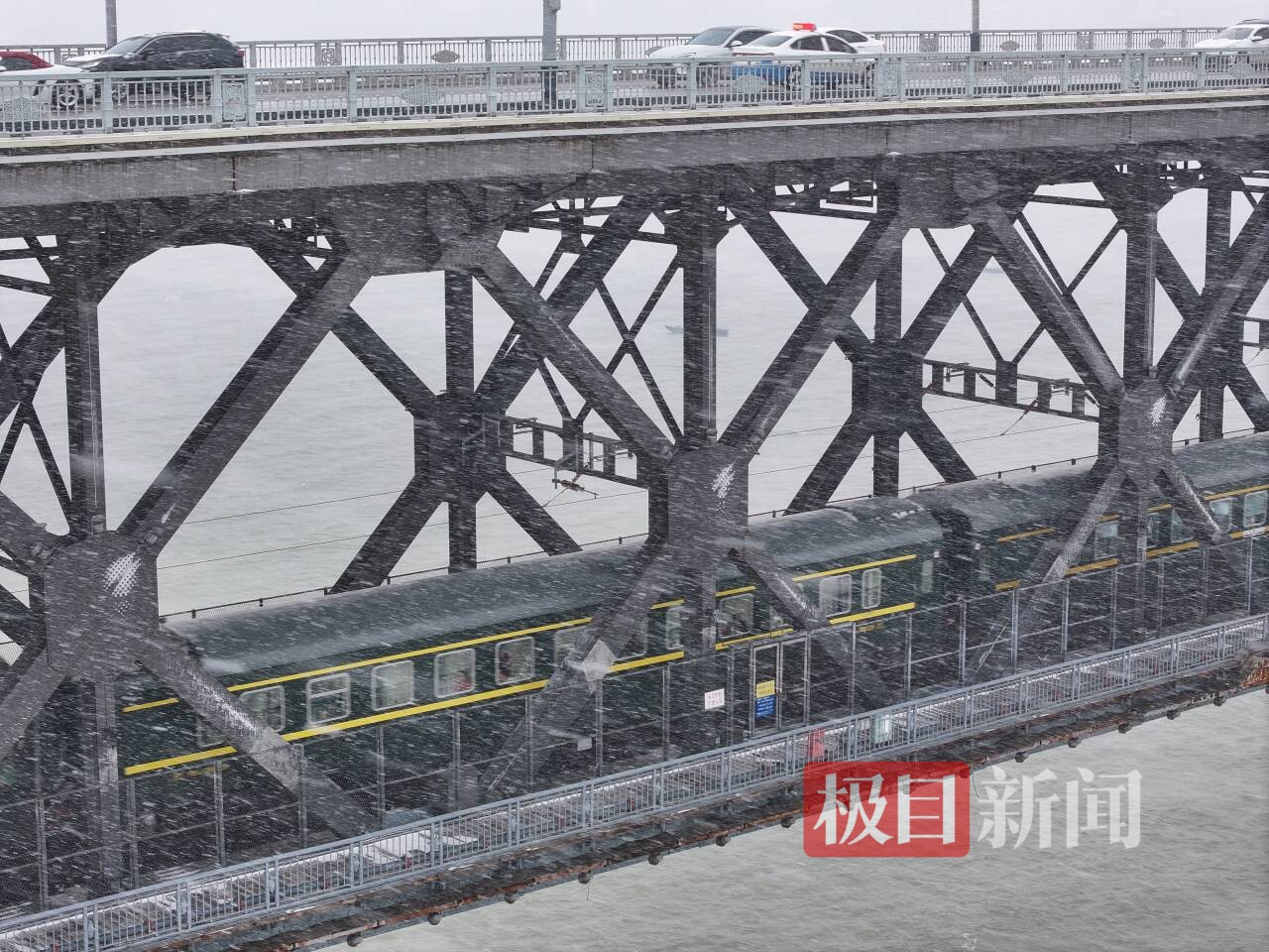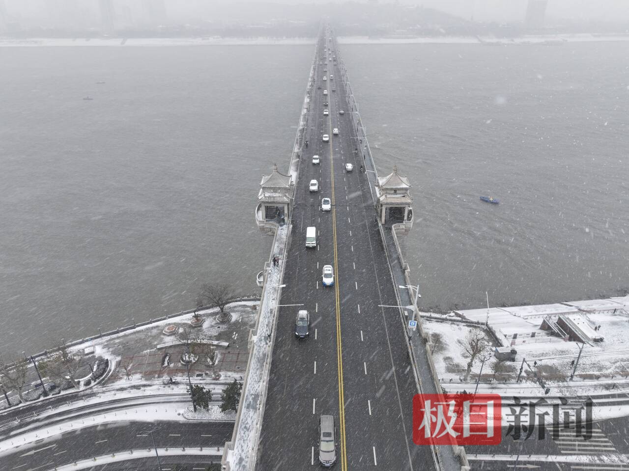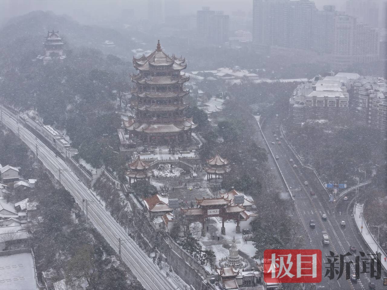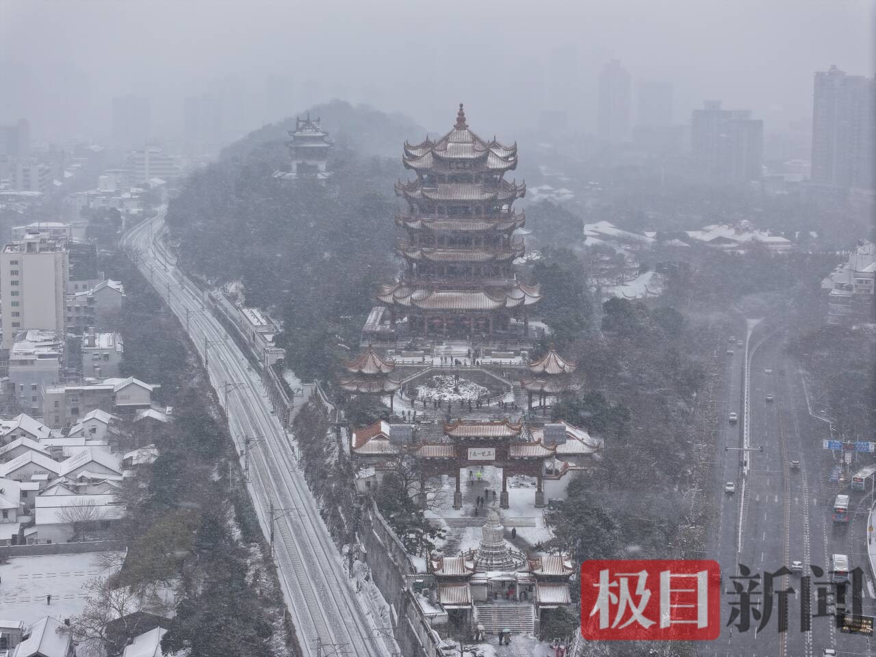 黄鹤楼、长江大桥等武汉地标身披雪甲,在寒风里定格冬日图景
