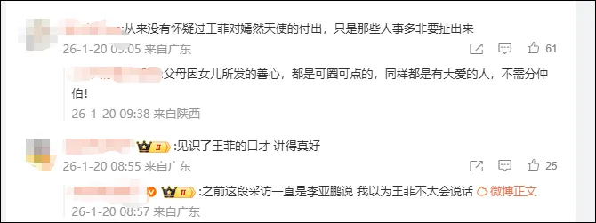 对此,有网友评价说:“从来没有怀疑过王菲对嫣然天使的付出”,也有网友夸赞见识了王菲的口才,讲得真好。