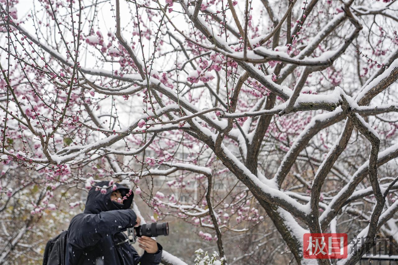 公园中,游客赏雪梅