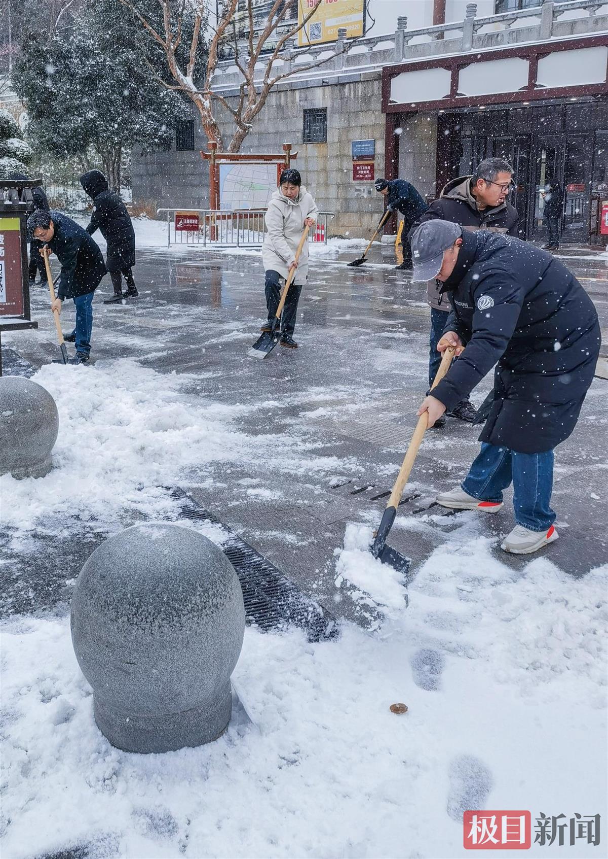 工作人员除雪保平安