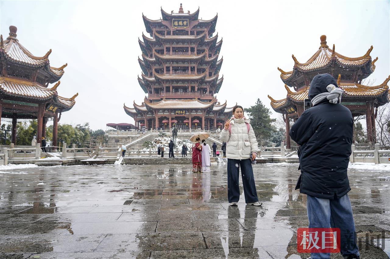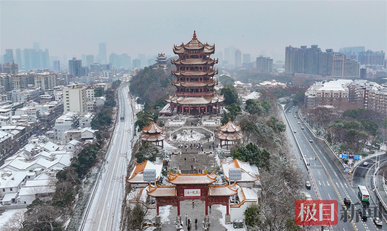 2026年1月20日,武汉迎来新年首场瑞雪。白雪素裹中的黄鹤楼分外壮丽。雪天中的黄鹤楼公园正常开园,吸引了众多游客前来欣赏黄鹤楼的别样风景。为保障游客游园平安,公园管理处出动应急人员200余人次,铺设防滑草垫及麻袋近1200个,清理断枝50余处、设置警示标志80个。工作人员竭力扫雪保平安,游客安心踏楼赏梅。