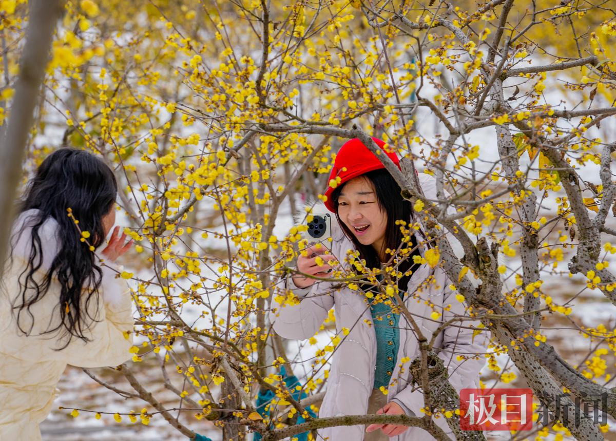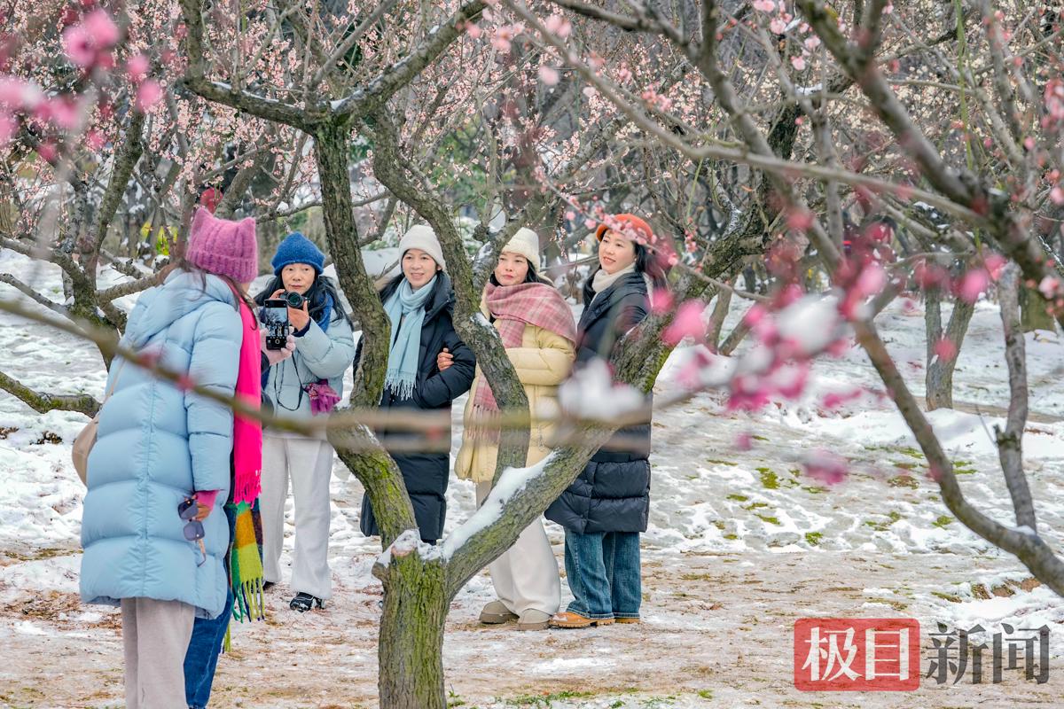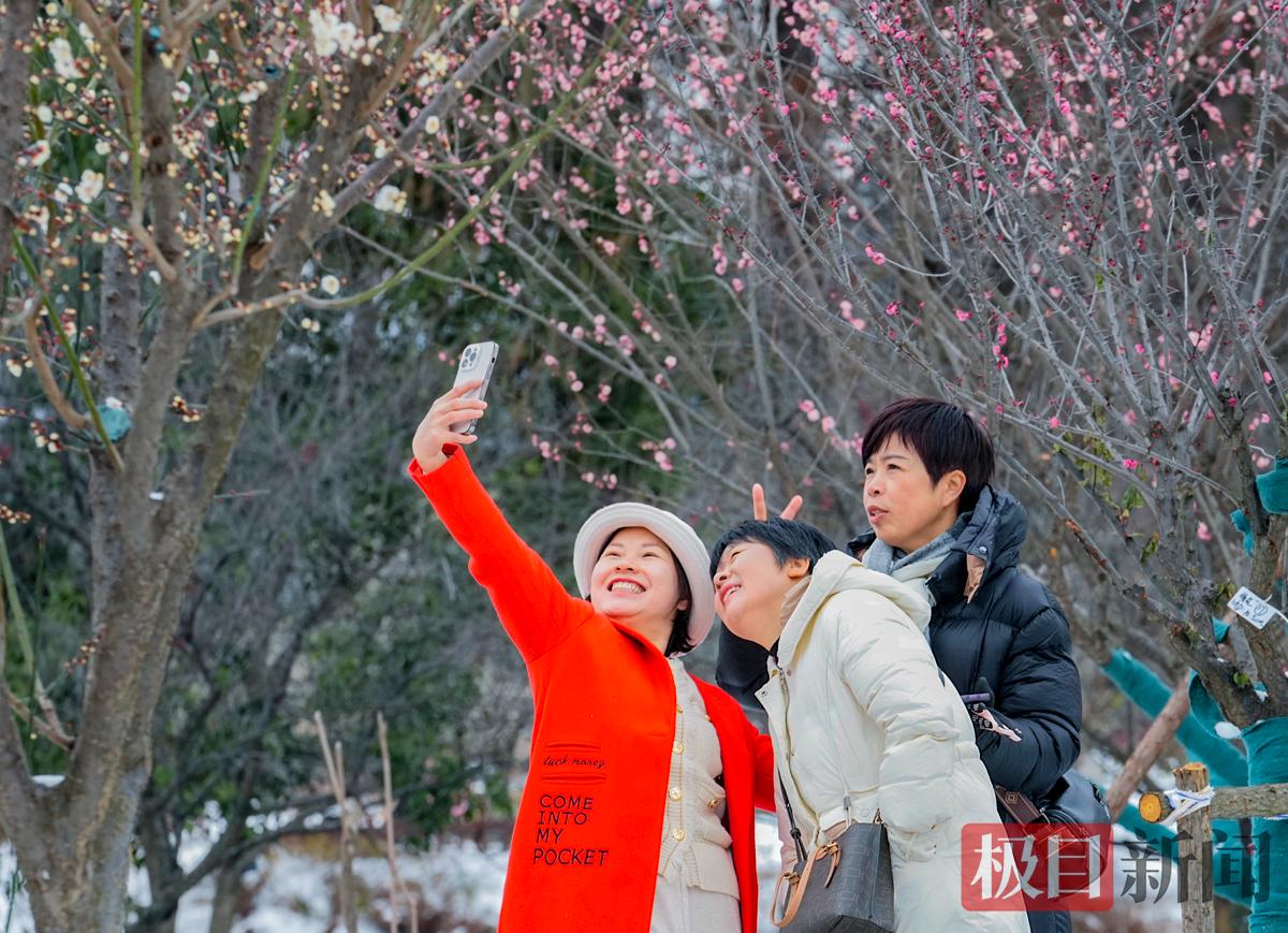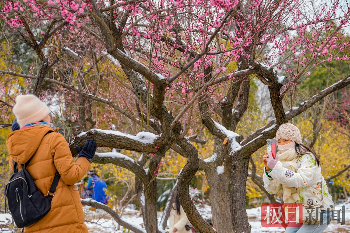 市民游客踏雪寻梅