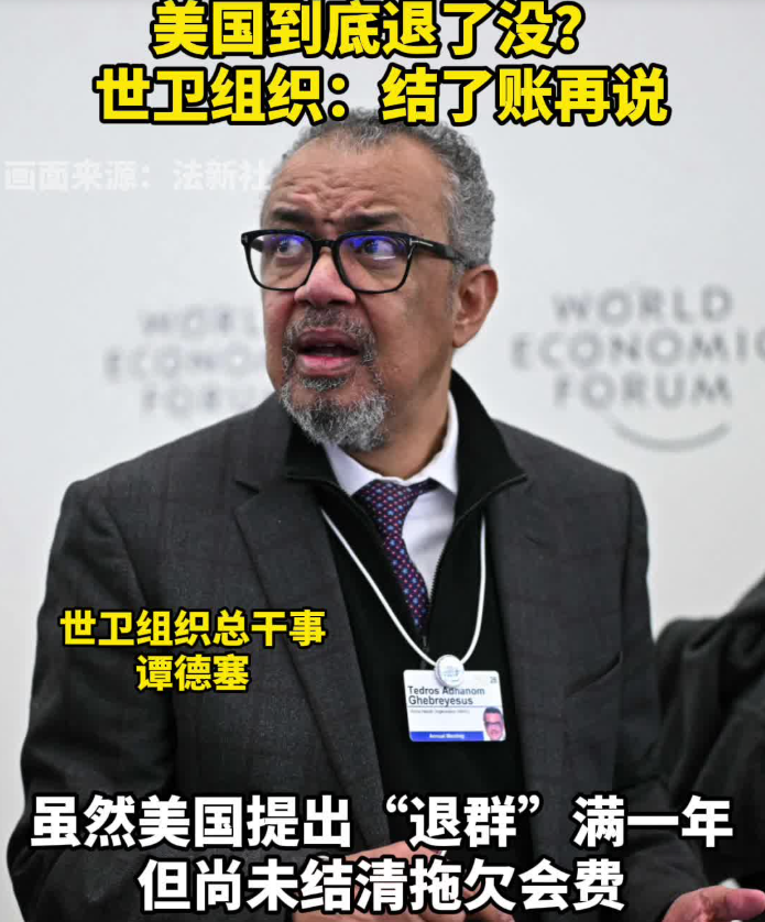 这名新闻官21日在邮件中回复说:“截至目前,美国尚未支付2024-2025双年度评定会费的账单金额……(美国退出世卫组织)这件事已列入即将召开的执行委员会议程,世卫组织秘书处将根据理事机构的建议和指导采取相应行动。”