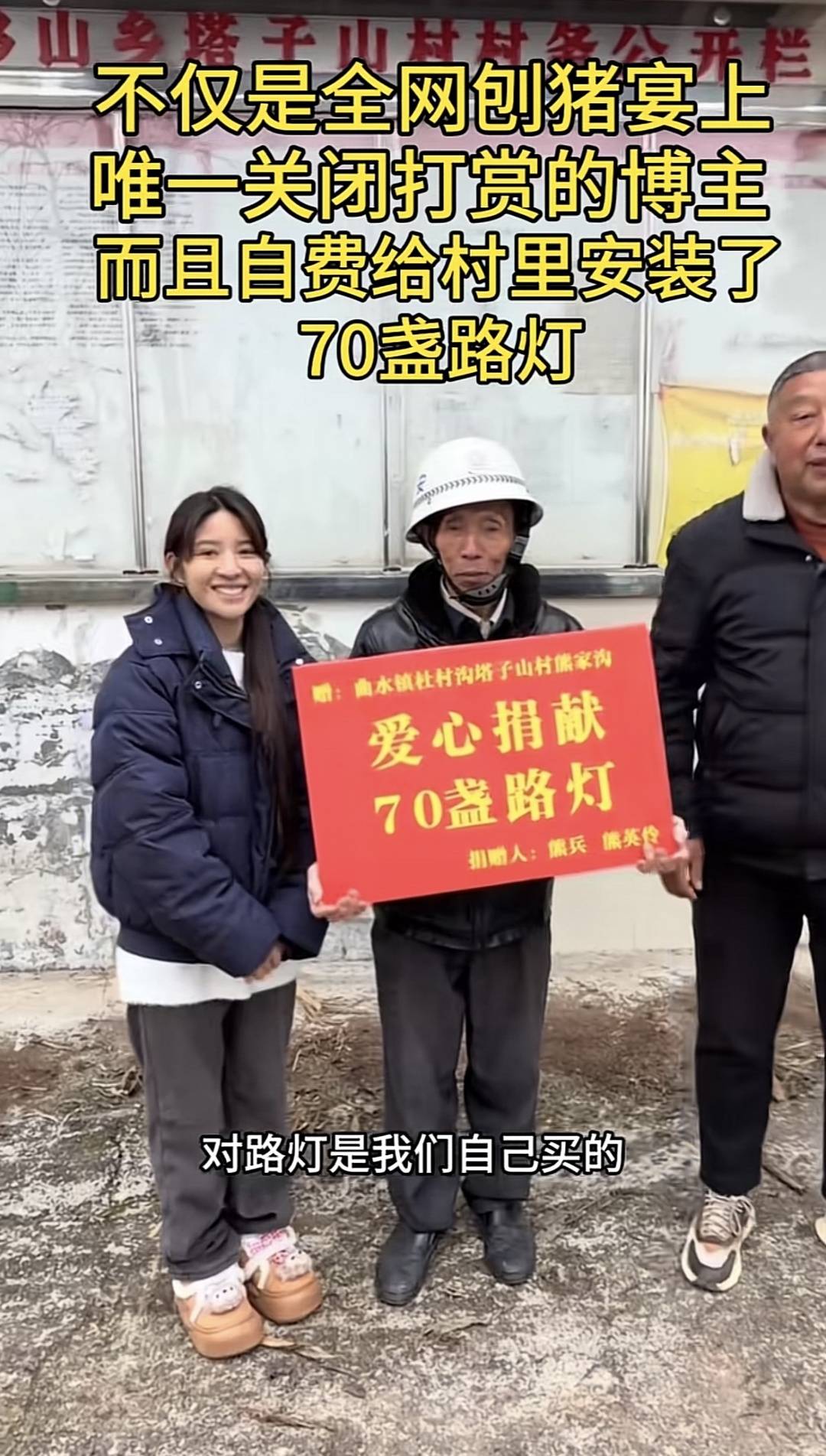 阿梓本名熊英伶,全网粉丝超400万。一周前,她在网上发视频“摇人”:自己出钱给村里装灯,缺安装帮手,完工请大家吃刨汤宴。没想到,有近万人应声而来帮忙。