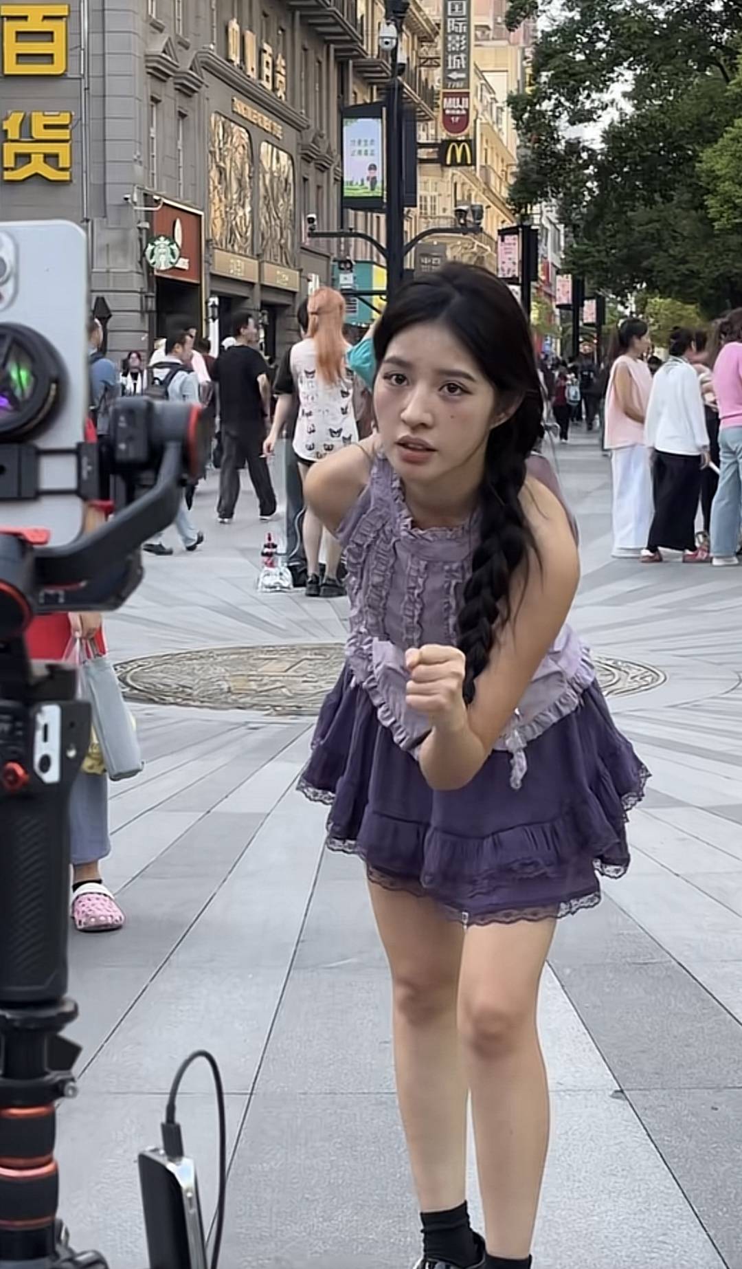 早期,阿梓在大街上跳“尬舞”