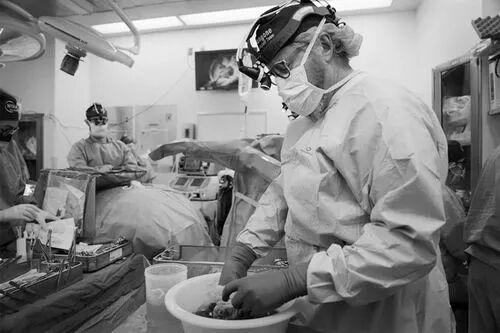 △Robert Montgomery在纽约准备将猪肾移植到一名脑死亡男子体内。图片来源:Shelby Lum