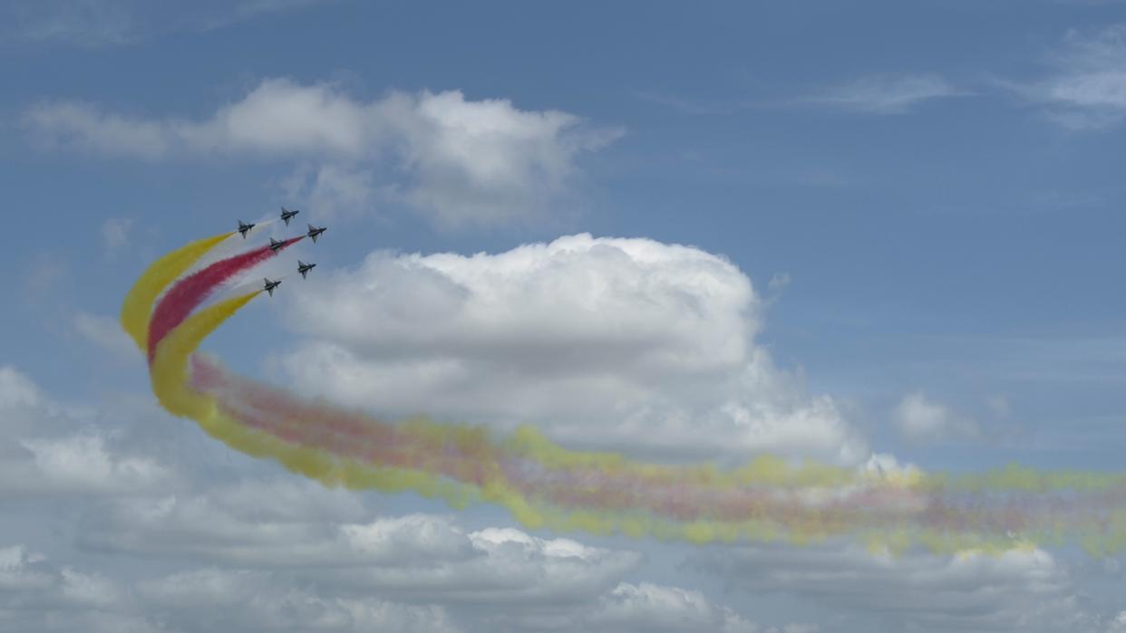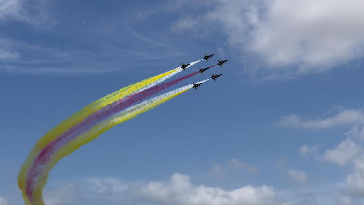 1月30日上午,中国空军八一飞行表演队在新加坡樟宜机场开展适应性训练,进行第十届新加坡航展首场飞行。