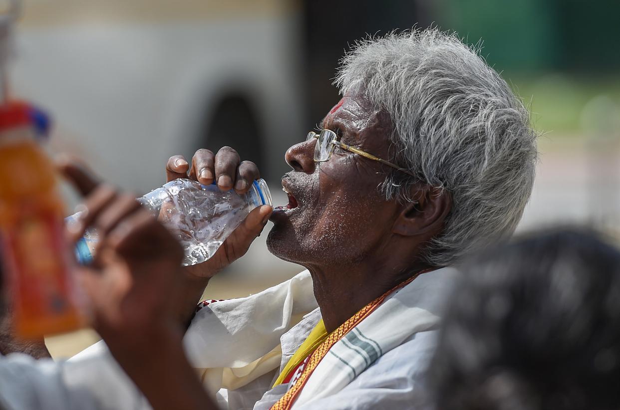 2023年5月23日,在印度新德里,一名男子在街头喝水。新华社发(贾韦德·达尔 摄)