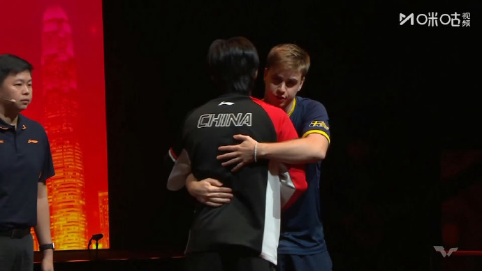2025年12月14日下午,WTT香港总决赛男单半决赛,王楚钦因伤退赛,两人登场后拥抱致意,希望王楚钦好好养伤,早日康复,莫雷加德晋级决赛。
