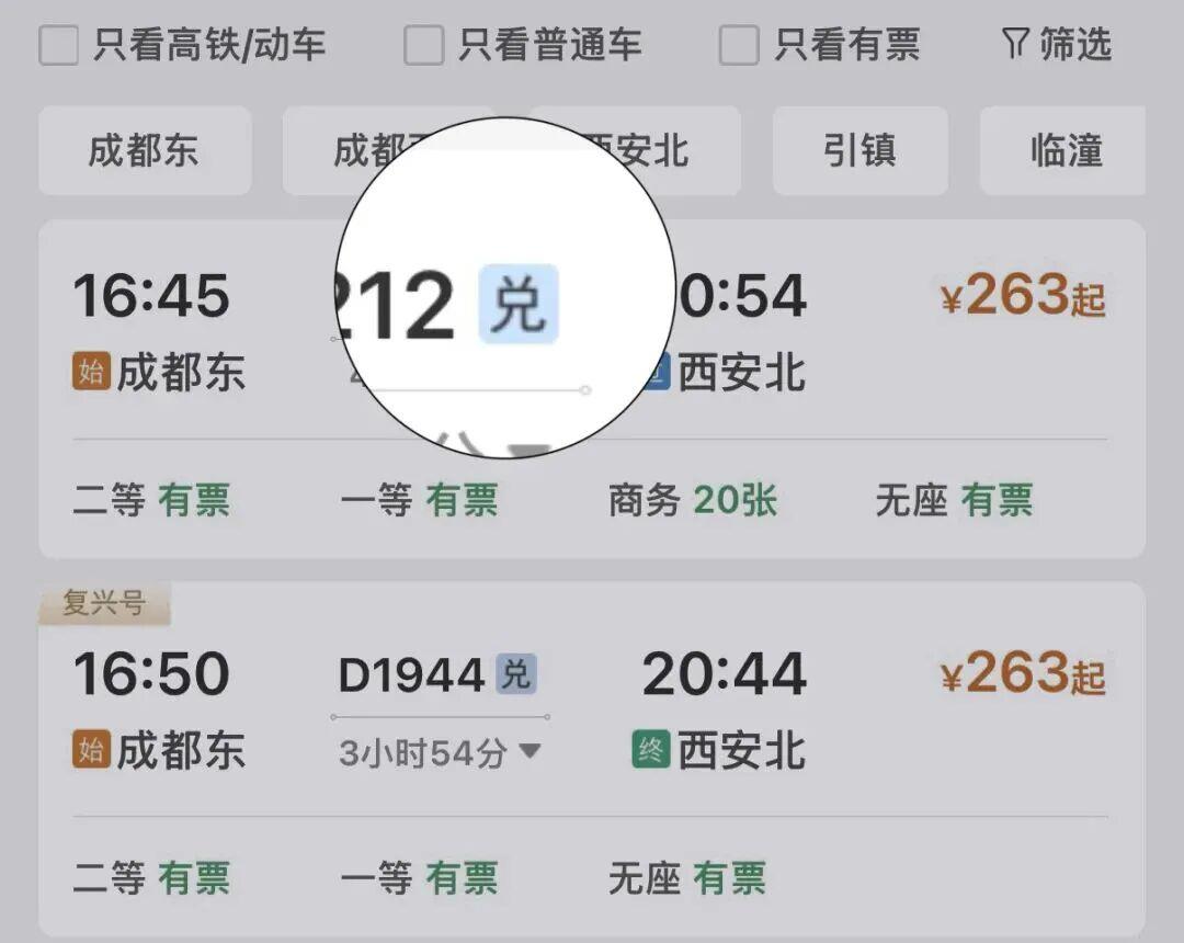 显示“兑”字的车次