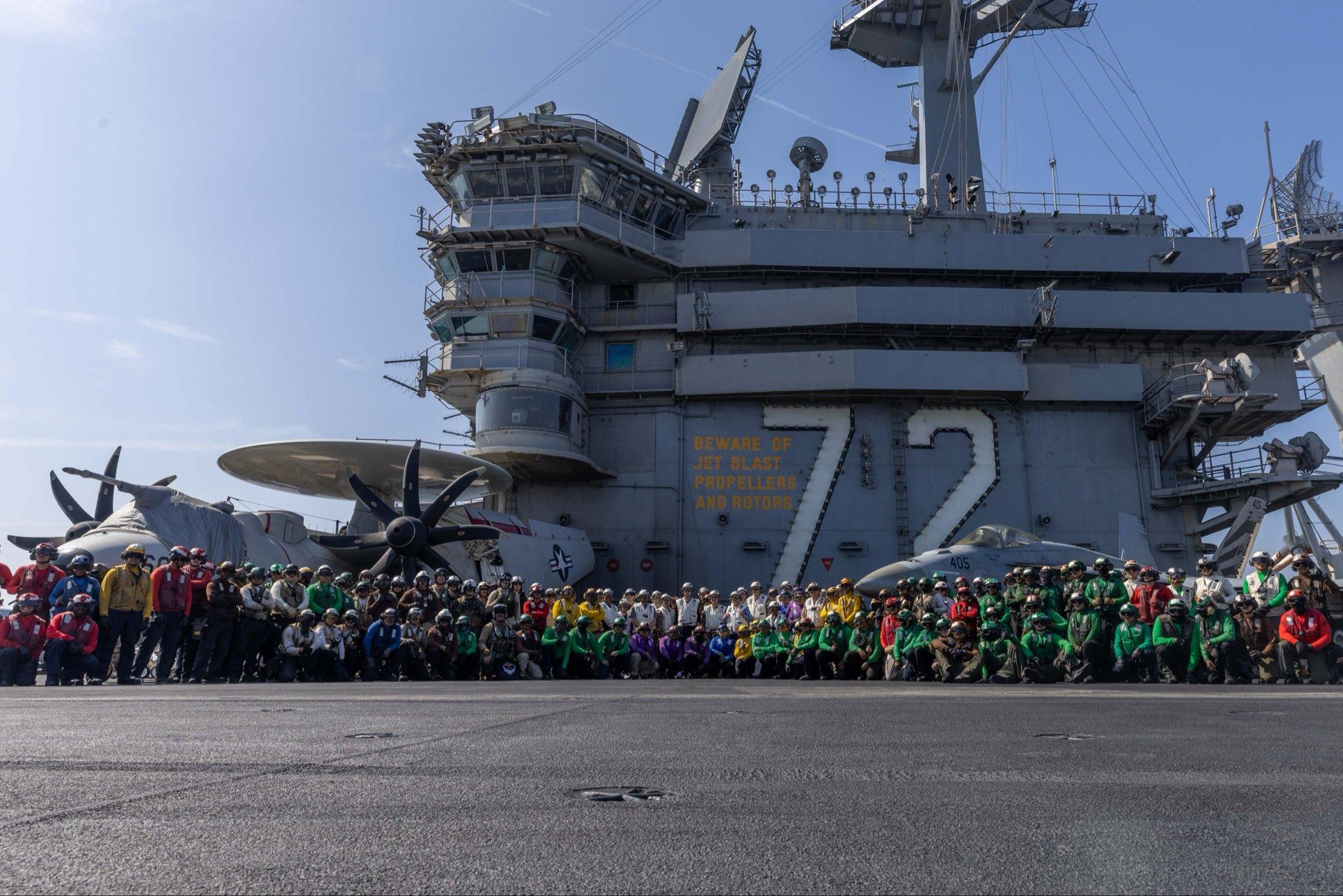 △7日,威特科夫发布访问“林肯”号航母照片。