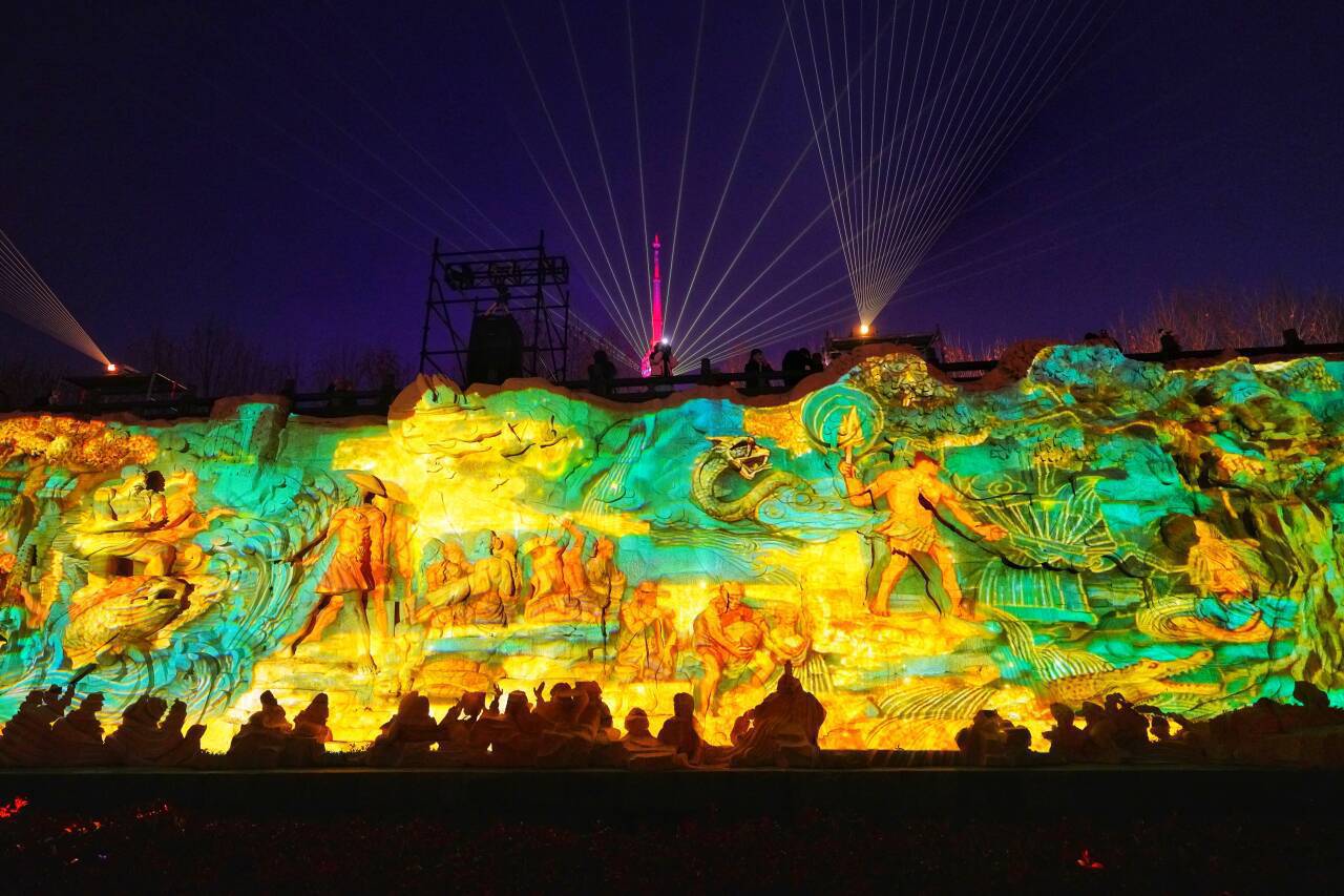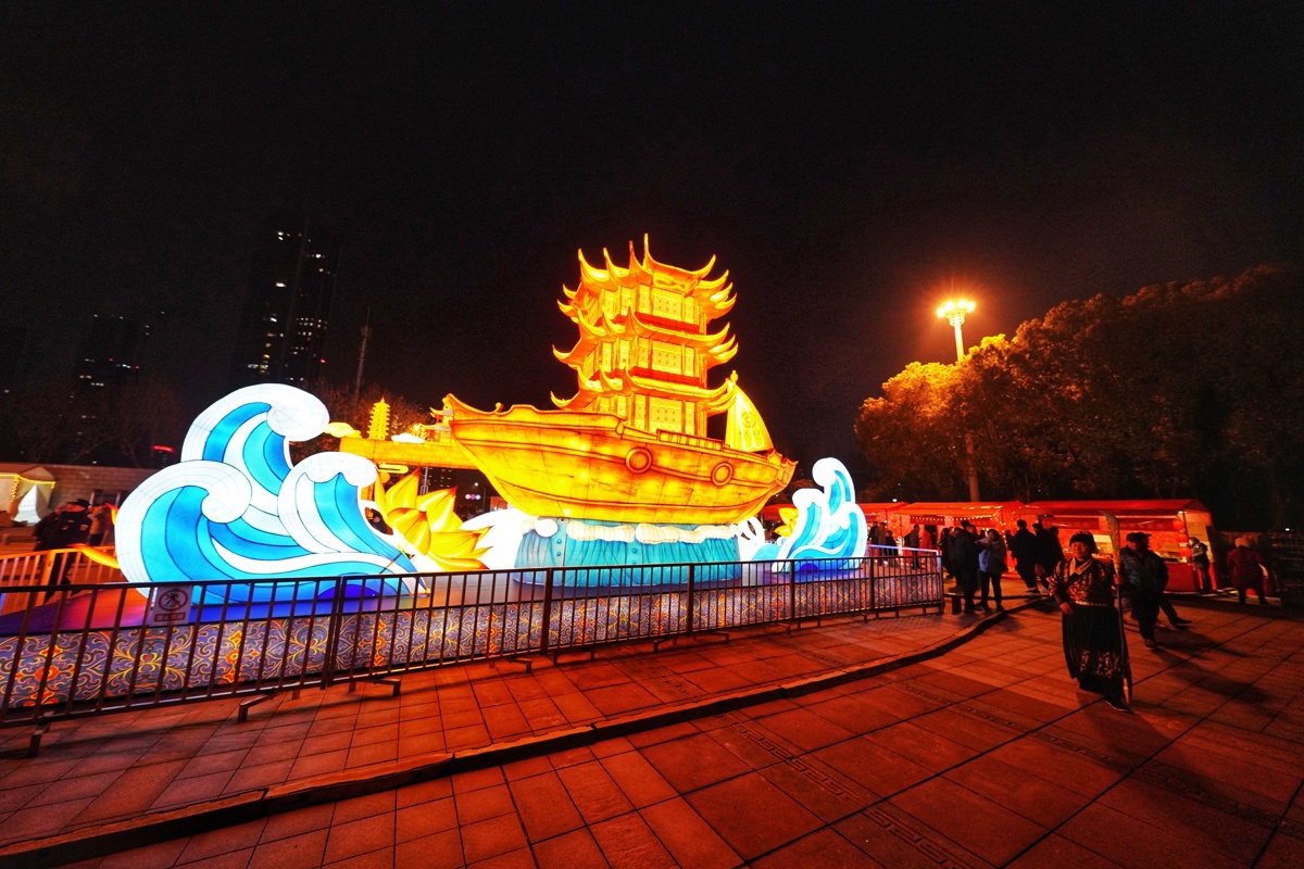 灯会核心区域南起朝宗门、北至晴川门,全长约1公里,占地9000平方米,打造了“繁盛江城·东方画境”“秘林探奇·大禹秘境”“荆楚浪漫·晴川诗境”三重盛境。内容涵盖5个超大型灯组、4大美人灯组、3大主题门头、2处光影密林、1场沉浸式光影秀、6处演绎节点及3组特色市集等。