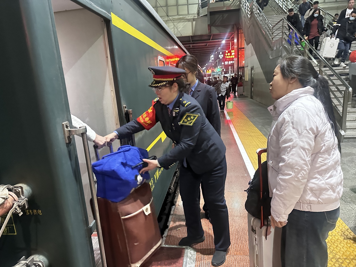 车厢内,过道被行李巧妙“填满”,浓郁的年味弥漫在空气中。汪玺穿梭其间,细心整理行李架,耐心回答问询,目光始终关注着旅客的需要。“看到大家能平安、顺心地回家过年,我们再辛苦也值得。”她笑着说。