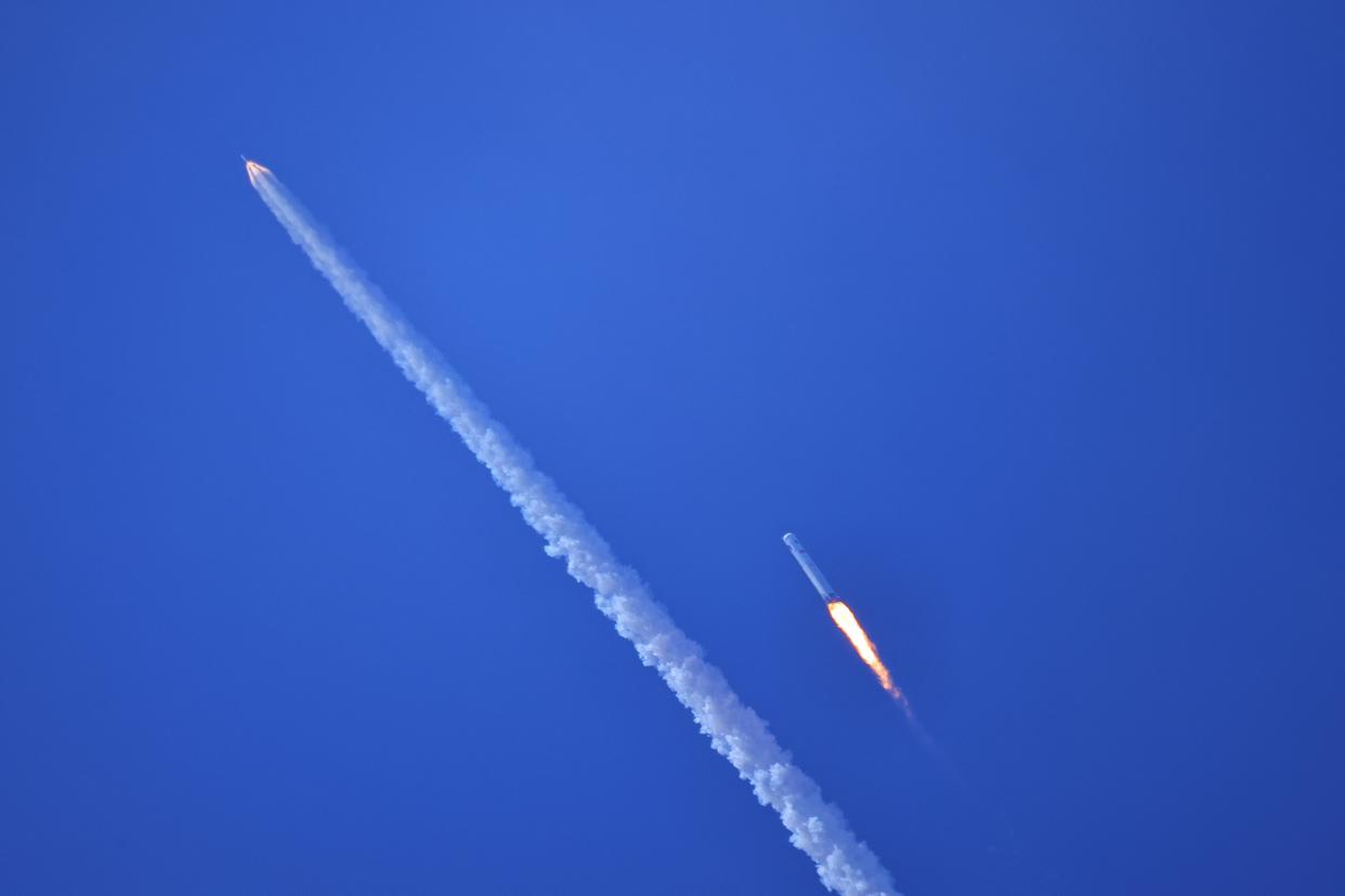 2月11日,梦舟飞船接收火箭发出的逃逸指令,成功实施分离逃逸。新华社发(王衡 摄)