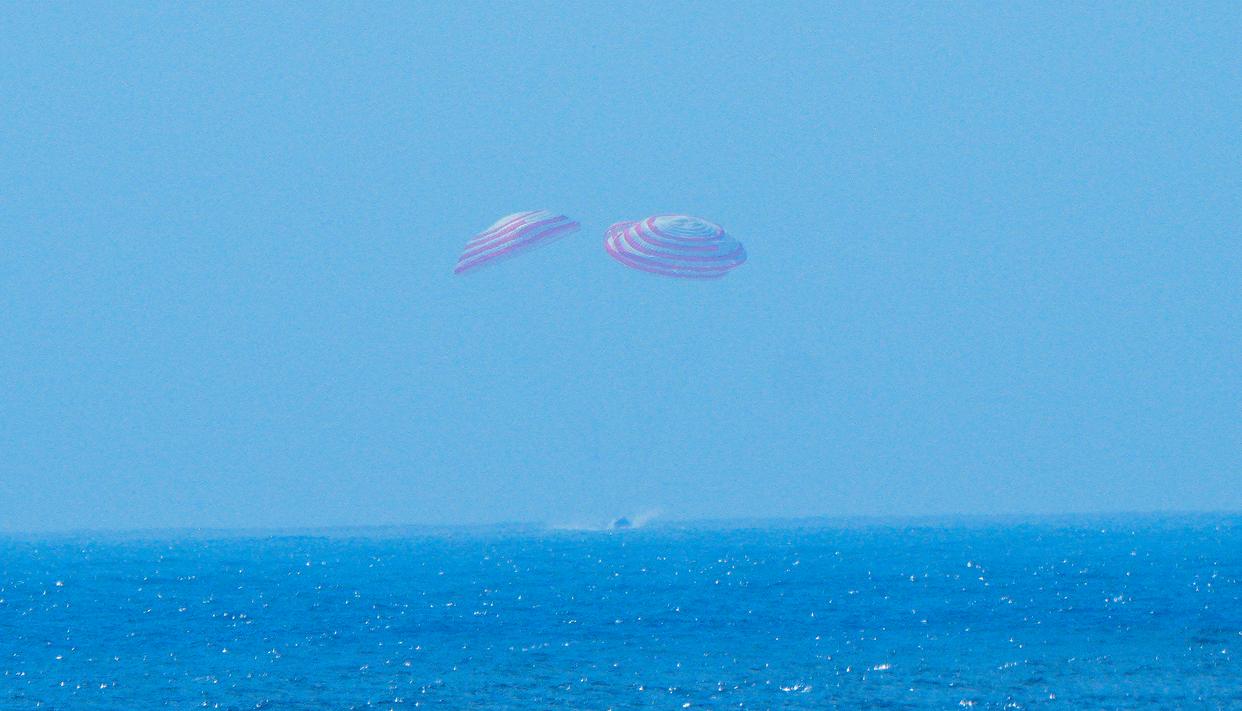 2月11日,梦舟载人飞船返回舱按程序受控安全溅落于预定海域。新华社发(王衡 摄)