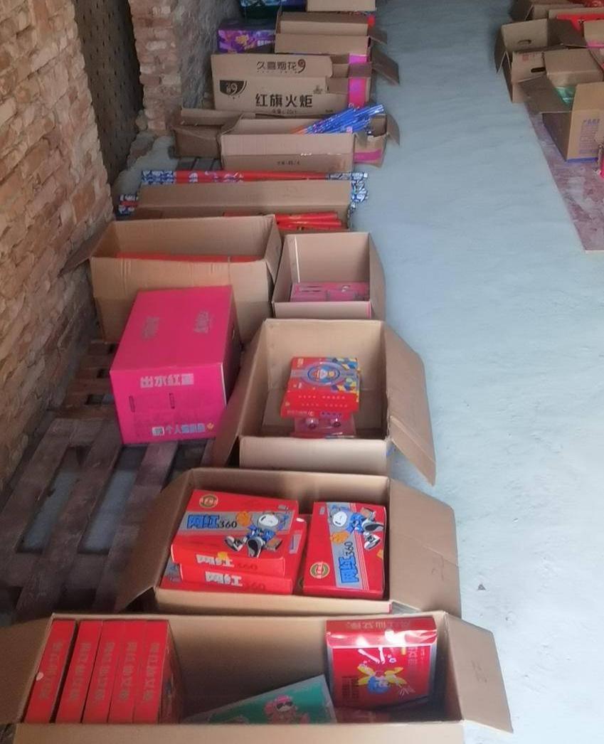 1月28日下午,经过连日证据固定和周全部署,收网时机成熟。民警迅速行动,打开房门,眼前景象令人心头一紧:地面密密麻麻堆满了各式烟花爆竹,清点后超过100箱。屋内电线私拉乱接,缺乏消防设施,一旦遇明火,后果不堪设想。