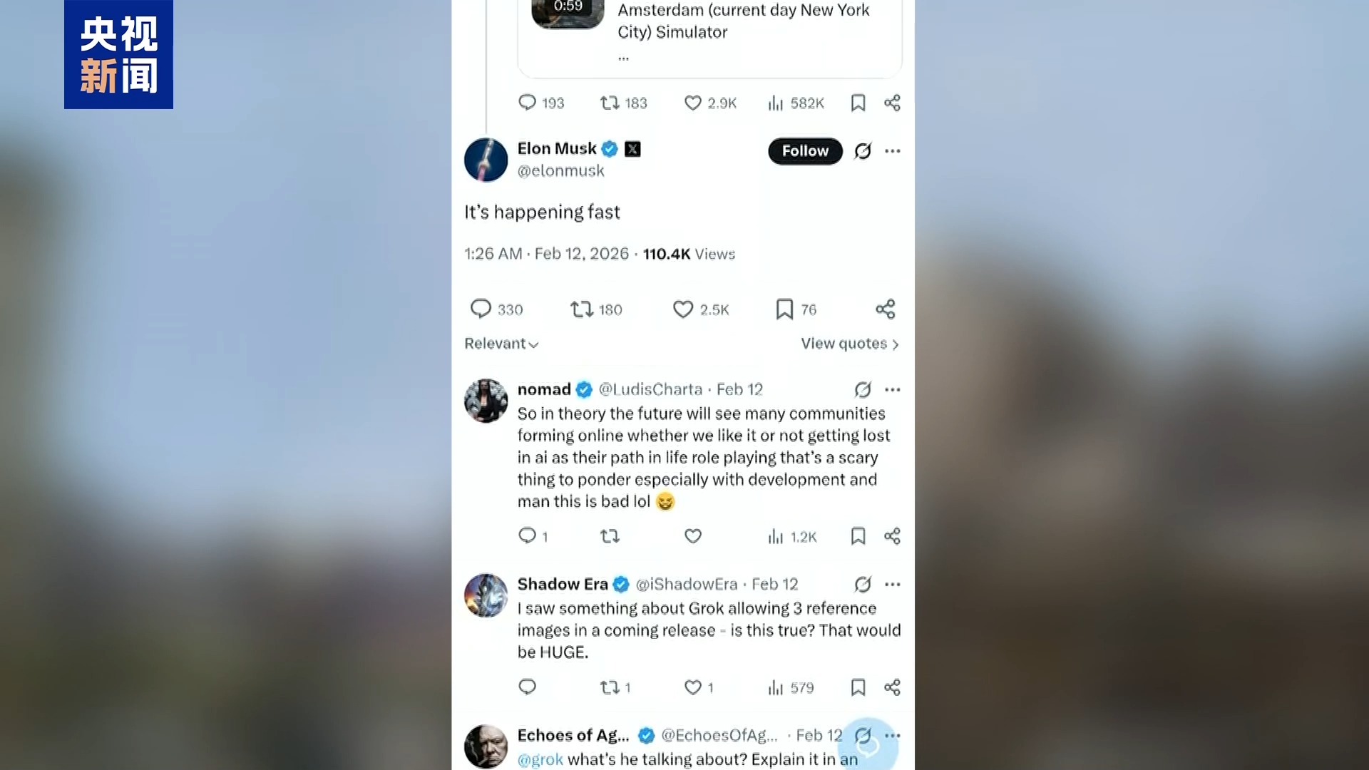 2月12日,美国企业家埃隆·马斯克在社交平台X上转发评论Seedance 2.0的相关推文,他说道:发展得太快了!