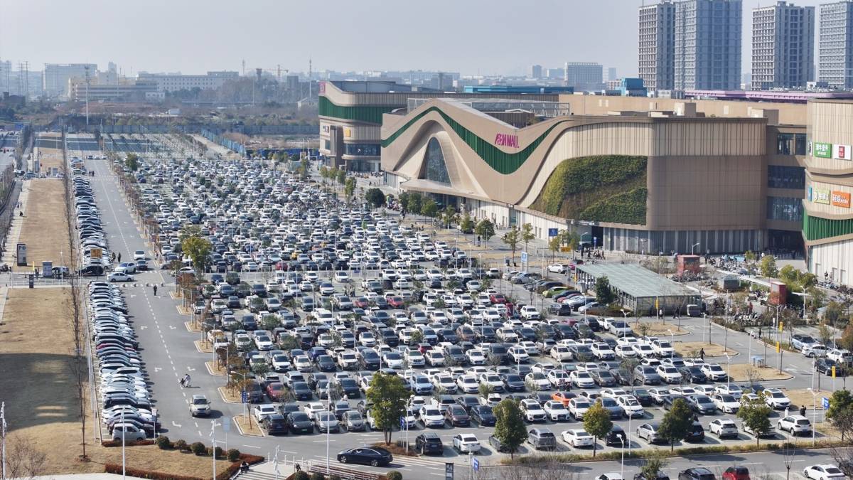 永旺停车场变身“车海”。(湖北日报全媒记者 陈少哲 摄)