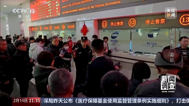 窗口内,售票员们只能凭借经验,尽量帮助排在最前面的两三个人买到回家方向的车票。队伍后面的旅客,大多只能得到“车票已售罄”的答复。
