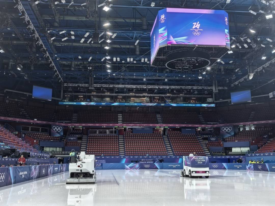在米兰,短道和花滑比赛大多分布在不同日期,但也有两天需同日进行冰面转换。伯勒尔介绍,每次转换需要约50人同时工作。“防撞垫等设备的转换需要约30分钟,我负责的冰面转换则需要3小时。我和制冷系统工程师、空气处理工程师等密切合作,为冰面创造适宜的环境。当场馆里有1万人时,温度和湿度会迅速变化,保持这些数值的稳定非常重要。”