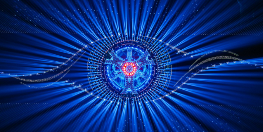 从高空俯瞰,一只巨大的“皖美之瞳”在合肥大地缓缓睁开。这是合肥分会场主舞台独具匠心的舞美设计——光影交织处,一个灵动璀璨的瞳眸跃然眼前。