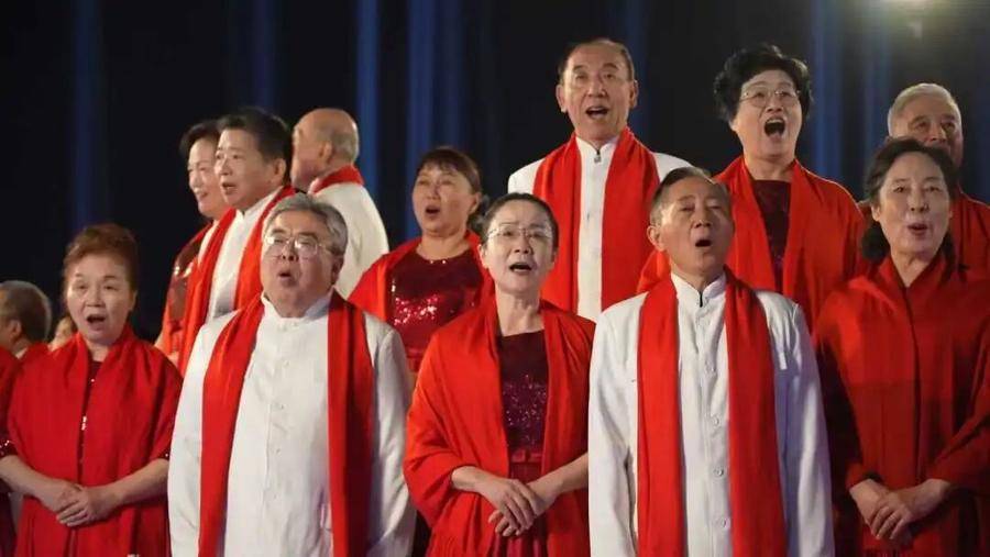 中科大金秋合唱团的老教授们登上舞台,平均年龄七十多岁,最大的八十多岁,最长一次排练站立十小时,无人喊苦喊累。他们用做科研的严谨对待每一个音符。
