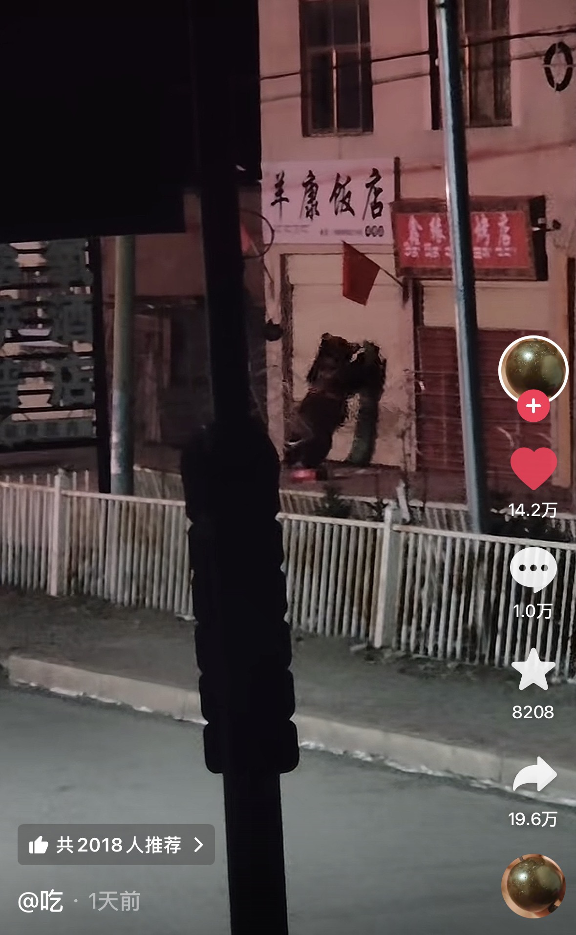 视频中,一家名叫羊康饭店的餐馆,有藏马熊疯狂捶门。另一个视频显示,藏马熊抬起了卷帘门,随后两只熊钻进了餐馆。