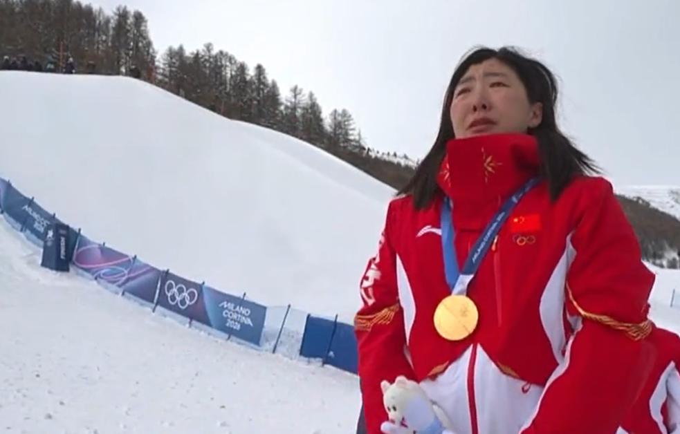 奖仪仪式上,36岁的老将徐梦桃泪水奔涌,哭成泪人。