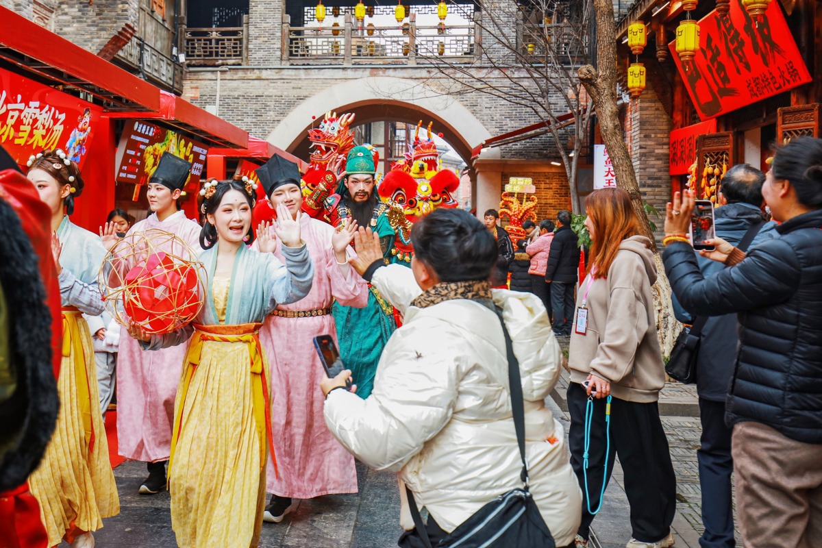 民俗焕新颜,好戏天天演,庙会的热闹藏在一场场精彩的传统表演里。春节假期至元宵节期间,民俗巡游、祥狮献瑞、经典戏曲等演出轮番登场,为新春添彩。2月16日-2月23日、3月2日- 3月3日,上午10时30分、13时30分与17 时,汉口里牌坊及三条主要街道,祥狮腾跃起舞,表演者以跳跃、翻腾的精湛技巧,生动演绎狮子的灵动神态与鲜活情感。13时30分、15时,汉口里汉正街过街楼上,京剧、越剧、黄梅戏等经典戏曲轮番开唱,婉转唱腔绕梁不绝。2月19日、20日上午10时30分,武汉京剧院专业演员带来《天女散花》《三岔口》等经典折子戏,以及《沙家浜》等红色现代京剧,让游客沉浸式感受传统戏曲的独特魅力。