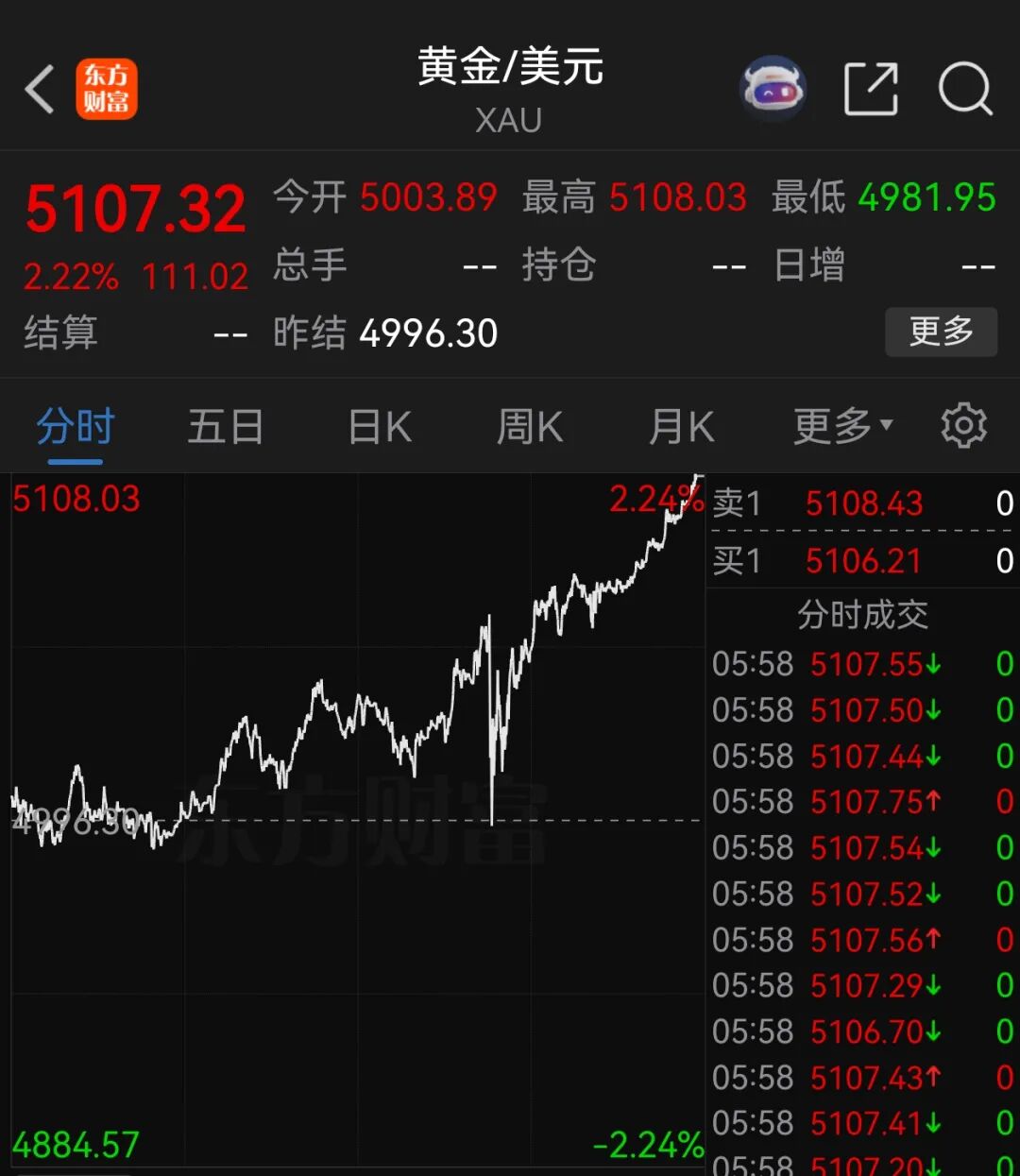 贵金属方面,Wind数据显示,截至当地时间2月20日收盘,现货黄金与现货白银价格全天上升趋势明显。现货黄金价格上涨2.20%,报5111.125美元/盎司,本周累涨1.27%;COMEX黄金期货涨超2%,本周累涨1.52%。