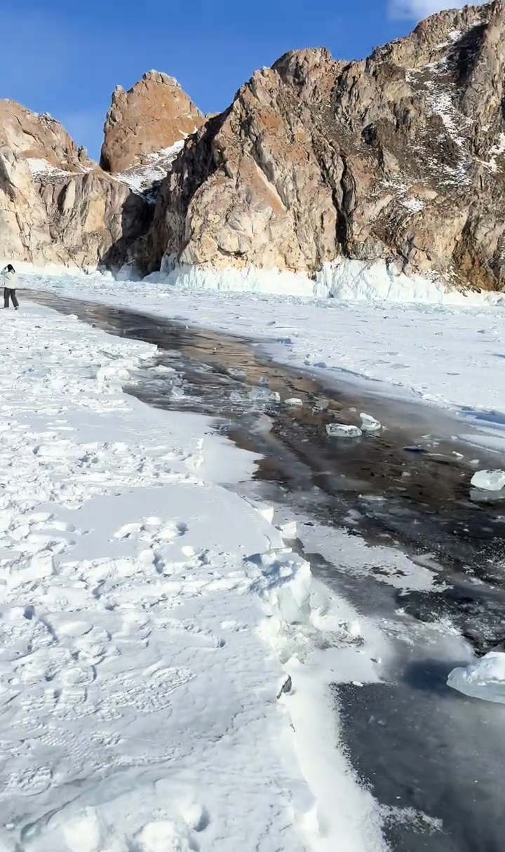 “这里大部分都是可坐9人的‘小钢炮’车,而我们一行5人坐的是一辆5座越野车。车小一点,人少一点,总重量就轻一些,驶到冰面上心里会踏实点。”Demo说,他们的司机人挺好,每到一个地方会自己去先步行走一遍,确认安全再喊游客们下车。Demo告诉极目新闻记者,奥利洪岛附近的湖面上,普通的冰层至少有半米厚,车开上去问题不大。当他们来到那条几米宽的冰缝时,司机在约10米外就停下车,然后他们小心地走近。“裂缝处同样有冰层,但感觉薄了很多,应该是白天裂开后晚上重新冻上的,有些地方甚至能直接看到湖水。我让同伴拉着我,用一只脚轻轻地踩了一下。”Demo说,当时他们还在冰缝处拍了视频,后来就离开了。回到酒店后,他们听其他客人说发生了沉车事故,再一打听,事故发生地就是他们去过的那条冰缝,时间就在他们离开一个多小时以后,这让他们感到后怕。